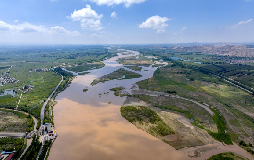 在宁夏中卫市中宁县拍摄的黄河(2024年8月7日拍摄,无人机照片)。凯发k8国际记者 杨植森 摄