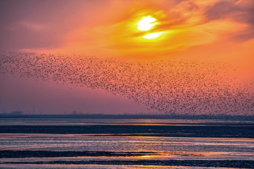 2024年初,监测人员在位于青海湖北岸的海晏县进行春季迁徙水鸟监测,观测到被誉为“鸟中国宝”的东方白鹳。